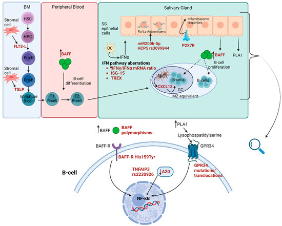 A schematic presentation of the newly proposed molecular and genetic predisposing factors for pSS-related lymphoma development and their pathophysiologic role is presented in Figure 1.