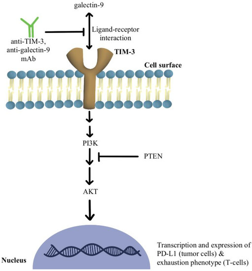 - Shayan, G.; Srivastava, R.; Li, J.; Schmitt, N.; Kane, L.P.; Ferris, R.L. Adaptive Resistance to Anti-PD1 Therapy by Tim-3 Upregulation Is Mediated by the PI3K-Akt Pathway in Head and Neck Cancer. Oncoimmunology 2017, 6, e1261779. [Google Scholar] [CrossRef] [PubMed]