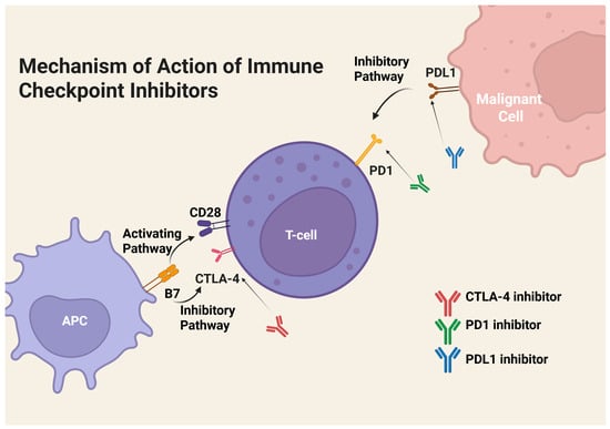 Shows the mechanism of action of immune checkpoint inhibitors. Created in BioRender, version 1.0.0.5; Science Suite Inc.: Toronto, ON, Canada, 2025. https://BioRender.com/edjus7i (accessed on 13 October 2025).