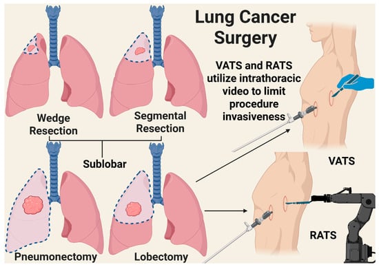 Different forms of surgery for NSCLC. Created in BioRender, version 1.0.0.5; Science Suite Inc.: Toronto, ON, Canada, 2025. https://BioRender.com/9itqfpi (accessed on 13 October 2025).