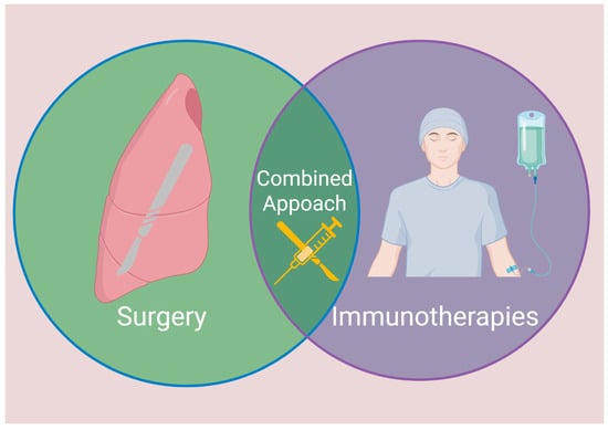 Shows the overlap between treating NSCLC surgically and with immunotherapy. Created in BioRender, version 1.0.0.5; Science Suite Inc.: Toronto, ON, Canada, 2025. https://BioRender.com/mllhbbc (accessed on 13 October 2025).