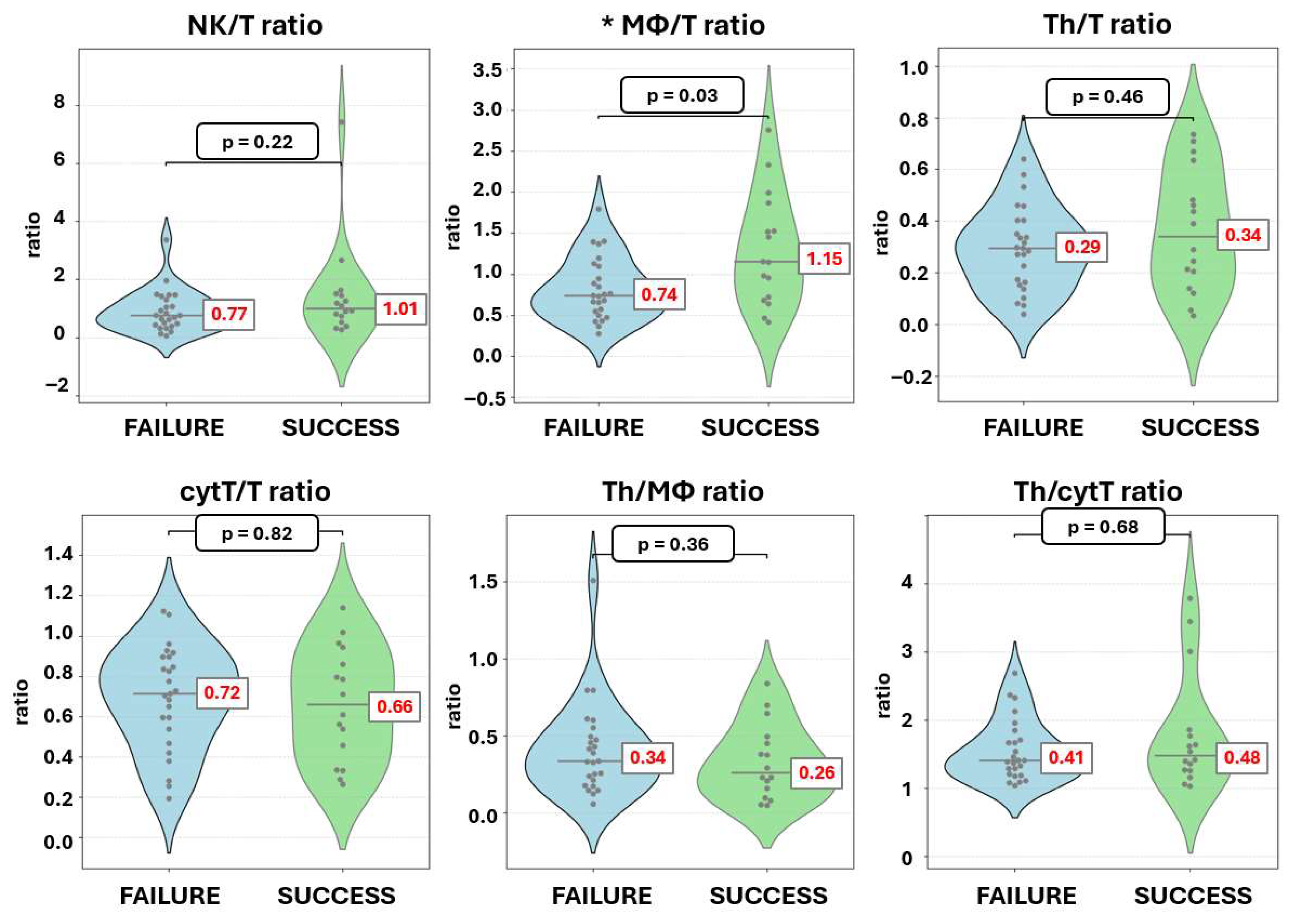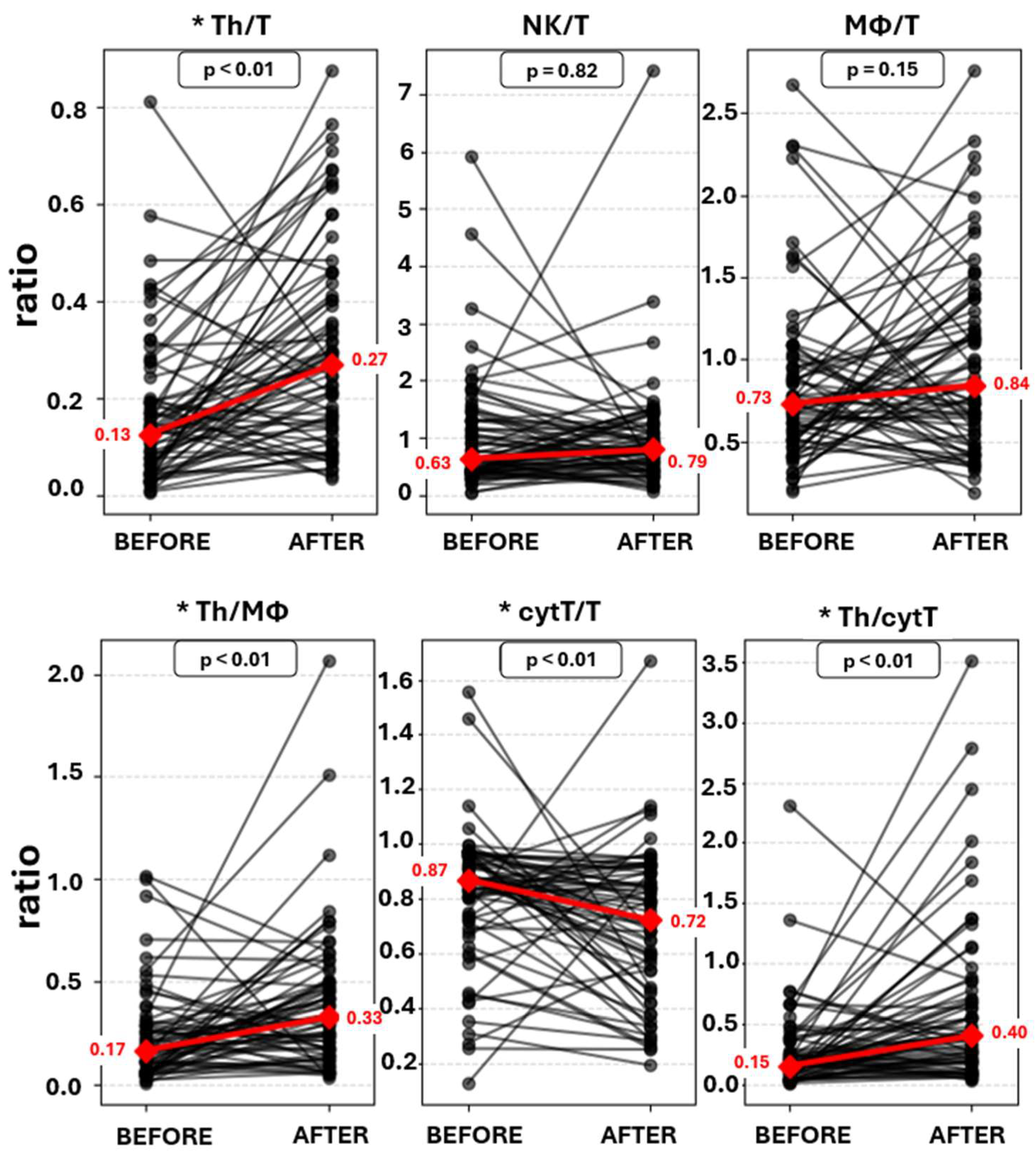 | Immune cell ratios | Th/T | 0.13 (0.15) | 0.27 (0.28) | <0.001 * |