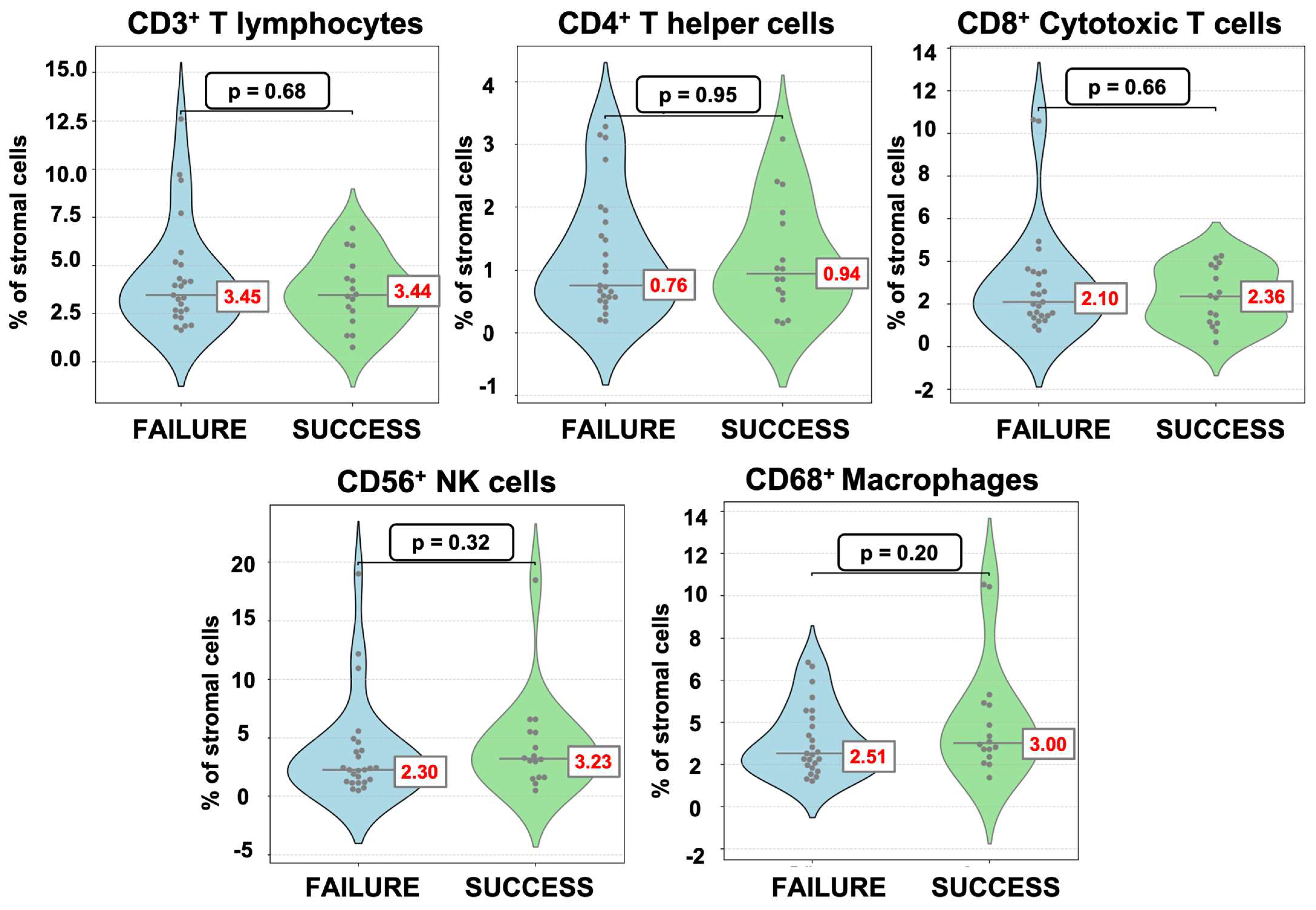 3.5. Association Between Endometrial Immune Cells and IVF Success