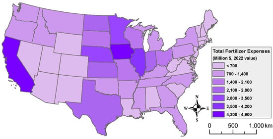 Figure 3 shows the state-level fertilizer expense in the US agricultural sector based on the most recent Census of Agriculture data. Because of the size of the demand, future ammonia and nitrogen fertilizer price trends are important for decision-making. It is also why policy support (elaborated later in this paper) is important for developing markets for LCIA-based products.