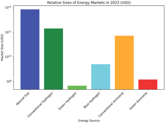21]. The primary demand driver is also the agricultural sector, where ammonia is a main ingredient in fertilizers and various industrial applications. The global ammonia market’s supply is dominated by regions with abundant natural gas resources, such as Russia, the Middle East, and the US. The conventional production process is highly energy-intensive and natural-gas-dependent (see