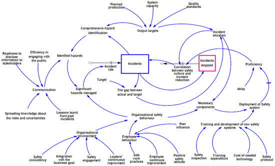 In general, blue hydrogen is considered a transitional solution aimed at cutting carbon emissions within industries presently dependent on fossil fuels. The future sustainability and social acceptance of these technological solutions will rely on various factors such as safety, environmental impact, regulatory compliance, and economic feasibility [37]. Public perception, influenced by trust in technology, environmental effects, and economic viability, is key. As awareness of climate change and technology advances, views on blue hydrogen’s role in the energy transition may change. Effective stakeholder engagement, communication, and education regarding both the advantages and obstacles of blue hydrogen are crucial to fostering broad acceptance of this technology. This paper employs a system dynamics approach to analyze how various identified parameters of safety culture impact the number of incidents. By modelling the interactions and feedback loops within the system, this method allows for a comprehensive understanding of how changes in safety culture elements influence incident rates over time. The study aims to identify key factors and influence points within the system that can lead to improved safety outcomes and reduced incident frequency.
