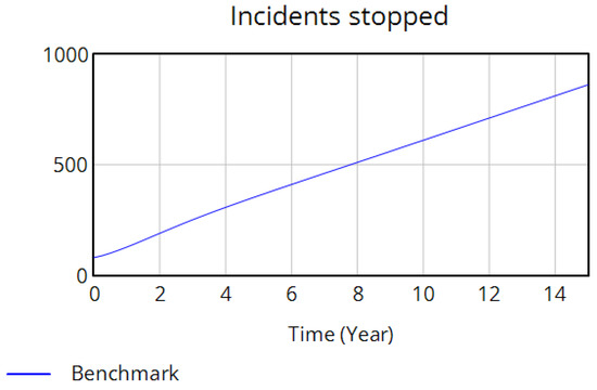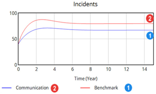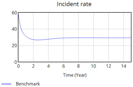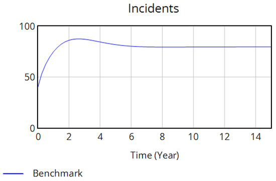 In the analysis, the benchmark scenario is a reference or baseline scenario used to compare with other scenarios. It provides a standard for assessing the impact of various variables, strategies, or interventions within a system. Detailed descriptions of these scenarios and the graphs of incidents can be found in Figure 10, Figure 11, Figure 12 and Figure 13.