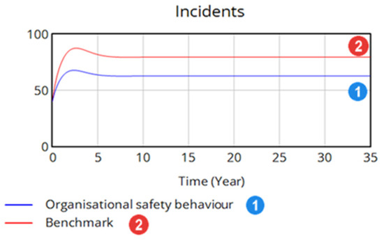 Impact of improvement in organizational safety behaviour on the number of incidents.