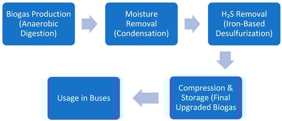 To enhance the methane content in biogas and upgrade it to bio-methane standards, the following flowchart system is presented in Figure 1.