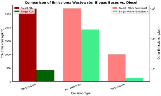 Comparison of emissions: wastewater biogas buses vs. diesel.