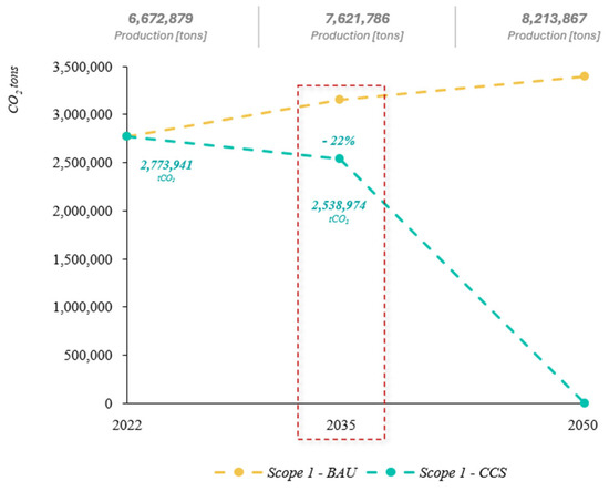 - CCS—due to the low technological maturity of this lever, CCS implementation is not expected before 2035. By 2050, CCS plants are expected to be implemented to capture residual process emissions, completing the transition to a low-emission scenario.
