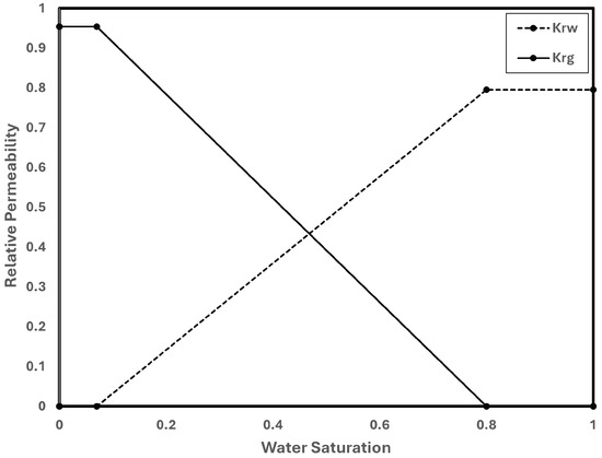 The formation volume factor is used to convert the densities of water and CO2 at surface conditions—1050.48 kg/m3 and 1.87 kg/m3, respectively—to their densities under reservoir conditions. Although capillary pressure significantly affects the migration of the CO2 plume, its impact is not considered in this study due to the lack of reliable experimental data on capillary pressure. This aspect should be addressed in future research [21].
