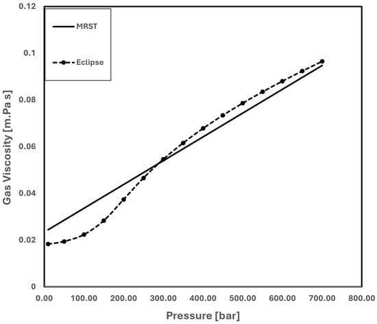 - Both in Eclipse and MRST, the viscosities of the gas and water behave remarkably similarly.