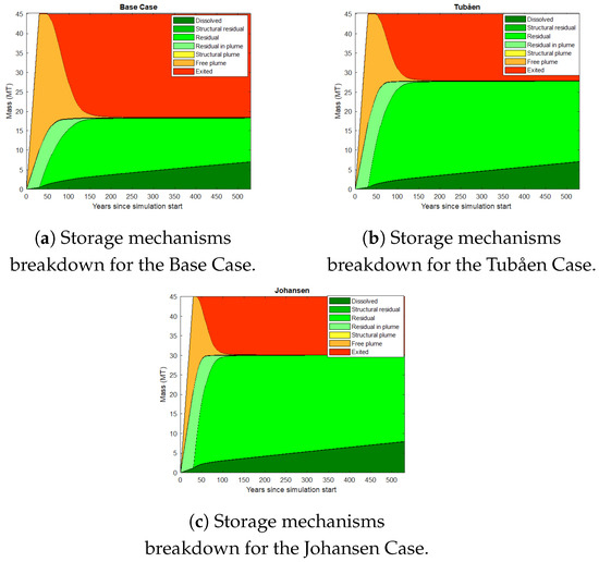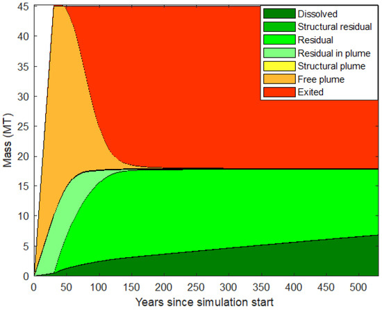 - The free plume, which can retain around 30 [MT] (1 [MT] = [kg]) of CO2, is the main mechanism for storing carbon dioxide during the first 50 years. About 18 [MT] of CO2 can be retained in the reservoir for the next 530 years via residual and dissolving processes, while 28 [MT] of CO2 has already left the reservoir.