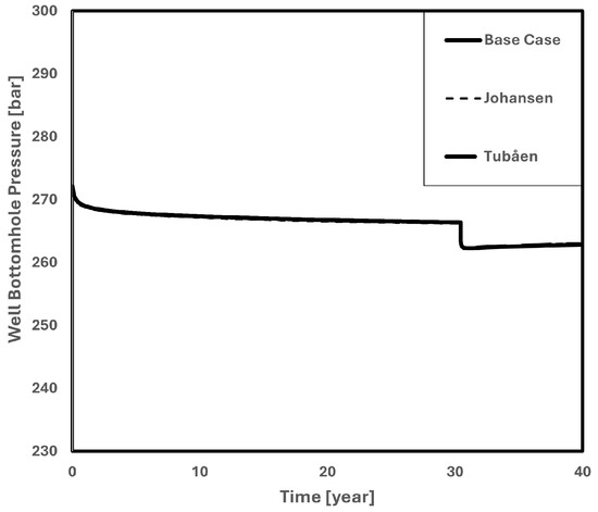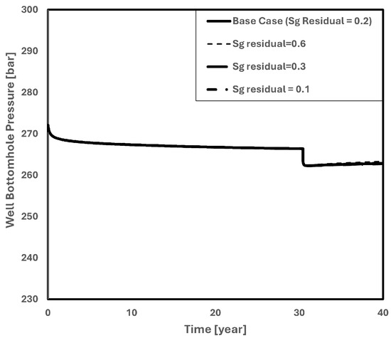 Given that the injection pressures in each of the various saturation instances are almost equal, Figure 25 provides further evidence that the well bottom-hole pressure in the reservoir model is not sensitive to residual gas saturation.