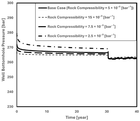 Well bottom-hole pressure in rock compressibility sensitivity analysis.