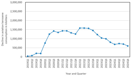 The decline in aviation kerosene consumption from 2019Q1 to 2024Q4.