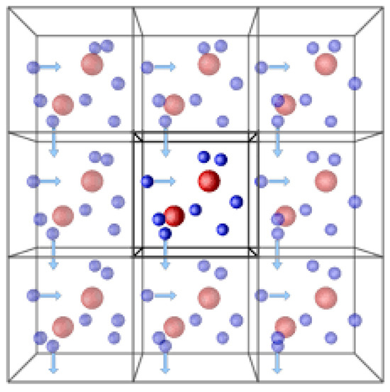 Figure 5. Periodic boundary conditions (PBCs) in molecular dynamics simulations are used to create a repetitive and infinite set of molecules to increase accuracy. - ❖