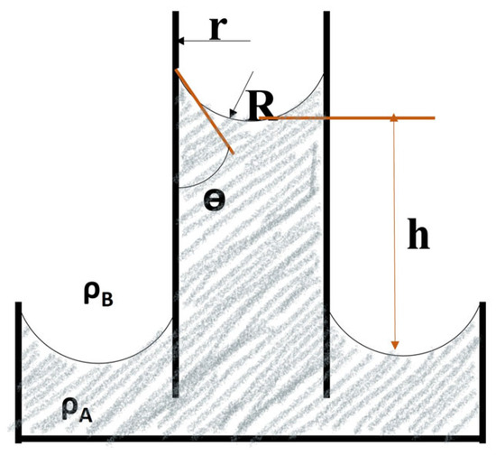 - Capillary Rise Method: This method utilizes the phenomenon where a liquid rises inside a narrow tube inserted vertically into the liquid, as shown in Figure 11. The height (h) to which the liquid rises depends on the interfacial tension (, the tube diameter (r or d), and the liquid’s density (. It is a relatively simple method, but it requires careful control of factors like tube cleanliness [37].
