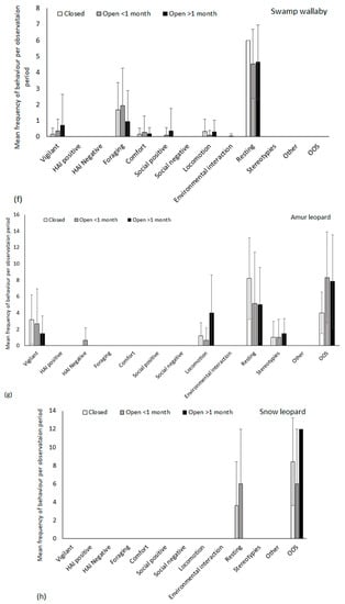 | Snow leopard | Resting OOS | Vigilant, feeding, locomotion, HAI positive, HAI negative, ARBs, comfort, social positive, social negative, environmental interactions (n = 0 observations) |