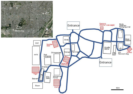 Enclosure arrangement of each animals in Obihiro Zoo.