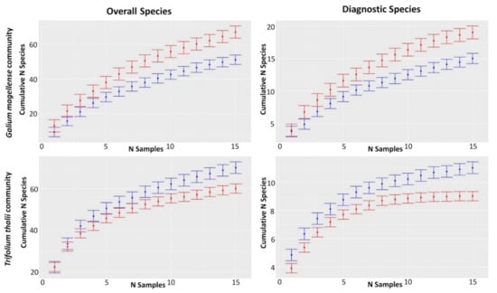 Although the response of high mountain plant species or habitats of European interest to environmental threats have been repeatedly documented (e.g., [,,,]), the analysis of diagnostic species diversity patterns with respect to the entire pool of species still requires further attention.