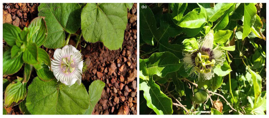 Morphological differences between a wild and a cultivated species of Passiflora L. (a) P. foetida and (b) P. edulis respectively.