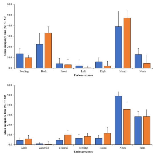 Figure 6), average occupancy times within specific enclosure zones can be similar for group and individual data (