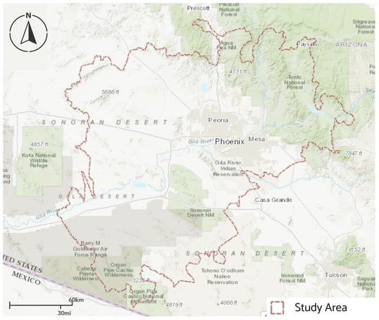 - Beute, S.; Arndt, L. The Regional Open Space Strategy for Maricopa County 2018. Beute, S., Arndt, L., Eds.; In The Regional Open Space Strategy for Maricopa County; Central Arizona Conservation Alliance: Phoenix, AZ, USA, 2018. [Google Scholar]