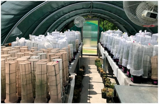 Through a series of subsequent workshops (including a variety of partners) following ex situ planning guidelines established by the IUCN [], potential roles for ex situ conservation programs were identified to support the recovery of both butterfly species in North America []. The MN Zoo was uniquely positioned to aid in these specific efforts. As an institution with nearly 40 years of experience rearing and breeding animals for conservation initiatives, we were able to lend our expertise and build the ex situ aspect of the butterfly program. Although ex situ breeding and reintroduction programs have been an increasingly implemented conservation tool [,], initially no protocols existed for rearing and breeding these species or any grass skipper (sub-family Hesperiinae). The MN Zoo’s biologists worked closely with other MN Zoo staff to design appropriate facilities (Figure 1) and began to build the protocols necessary for the rearing and managed breeding of Dakota skipper and Poweshiek skipperling.