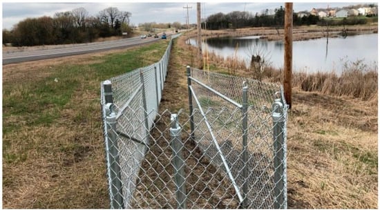 - Markel, T.; Stapleton, S. Reduce Vehicle-Animal Collisions with Installation of Small Animal Exclusion Fencing; Research Report; Minnesota Department of Transportation: Saint Paul, MN, USA, 2022. [Google Scholar]