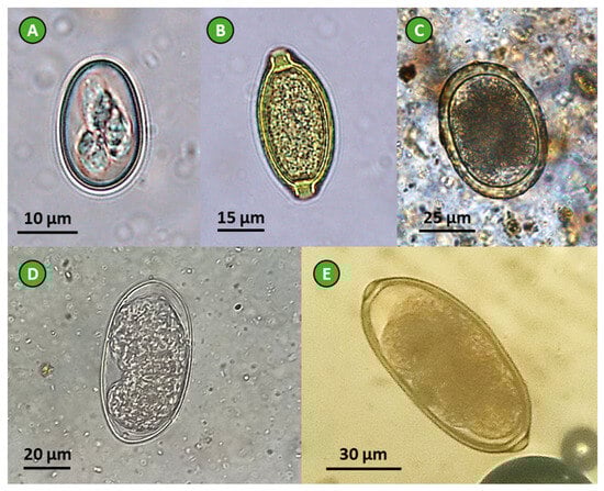 - Zajac, A.; Conboy, G. Fecal Exam Procedures. In Veterinary Clinical Parasitology; Zajac, A., Conboy, G., Eds.; Wiley-Blackwell: Ames, Iowa, 2012; pp. 140–155. [Google Scholar]