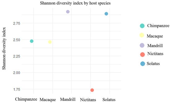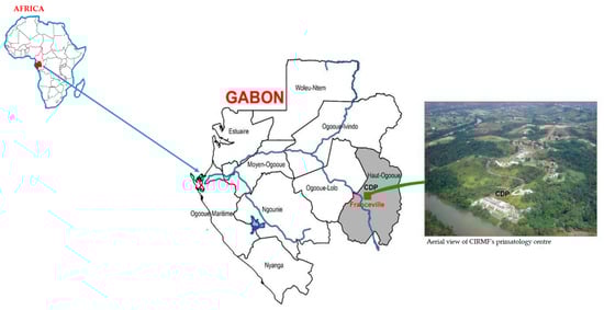 - Boundenga, L.; Ngoubangoye, B.; Moukodoum, N.; Dibakou, S.-E.; Moussadji, C.; Hugot, J.P. Diversity of parasites in two captive chimpanzee populations in southern Gabon. Infect. Genet. Evol. 2021, 91, 104807. [Google Scholar] [CrossRef]