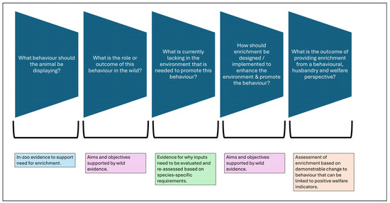 - Vicino, G.A.; Sheftel, J.J.; Radosevich, L.M. Enrichment Is simple, that’s the problem: Using outcome-based husbandry to shift from enrichment to experience. Animals 2022, 12, 1293. [Google Scholar] [CrossRef]