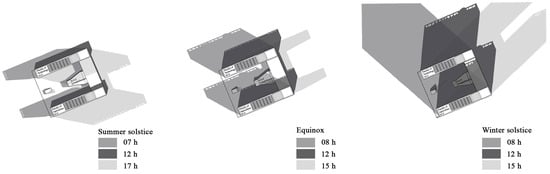 Shadow analysis of the orchidarium site (north oriented upward).