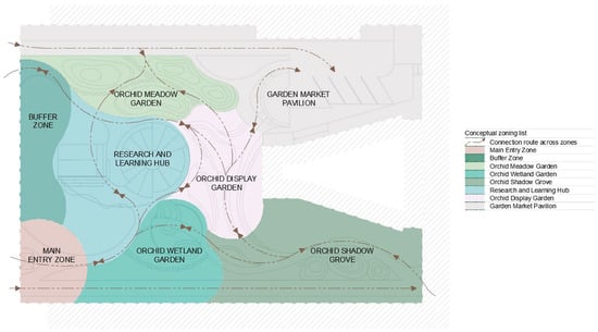 Conceptual zoning of the proposed orchidarium.