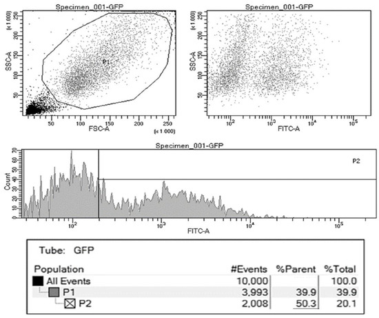 Figure 2. Flow cytometry analysis demonstrated that 50.3% of cells exhibited GFP reporter gene expression.