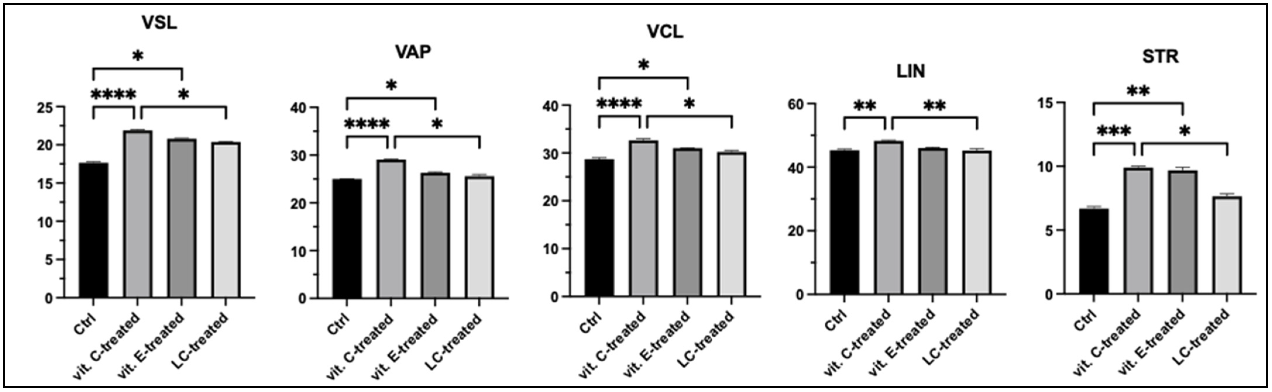- Ghafarizadeh, A.A.; Malmir, M.; Naderi Noreini, S.; Faraji, T.; Ebrahimi, Z. The effect of vitamin E on sperm motility and viability in asthenoteratozoospermic men: In vitro study. Andrologia 2021, 53, 138–141. [Google Scholar] [CrossRef]