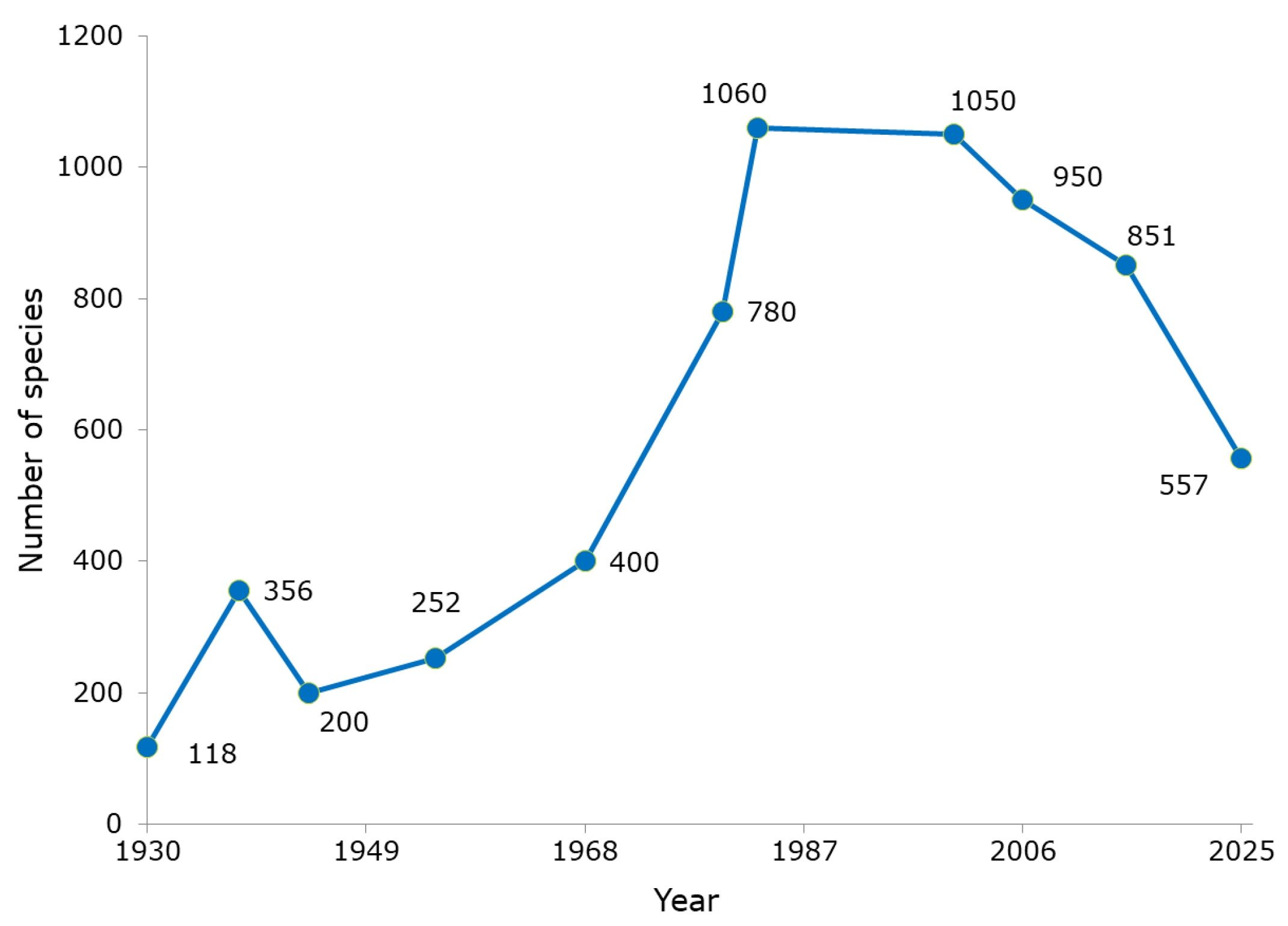 | Taxa without ranges | 138 | 13.7 | 12 | 11.4 | 0 | 0 | 0 | 0 |