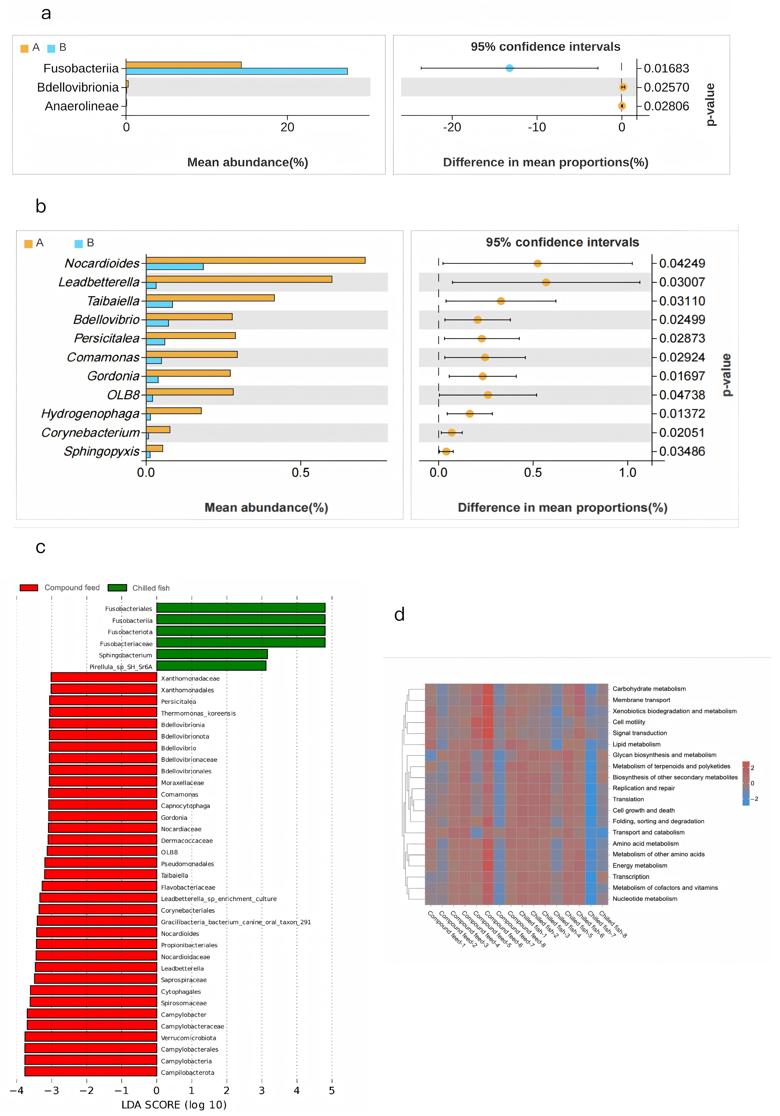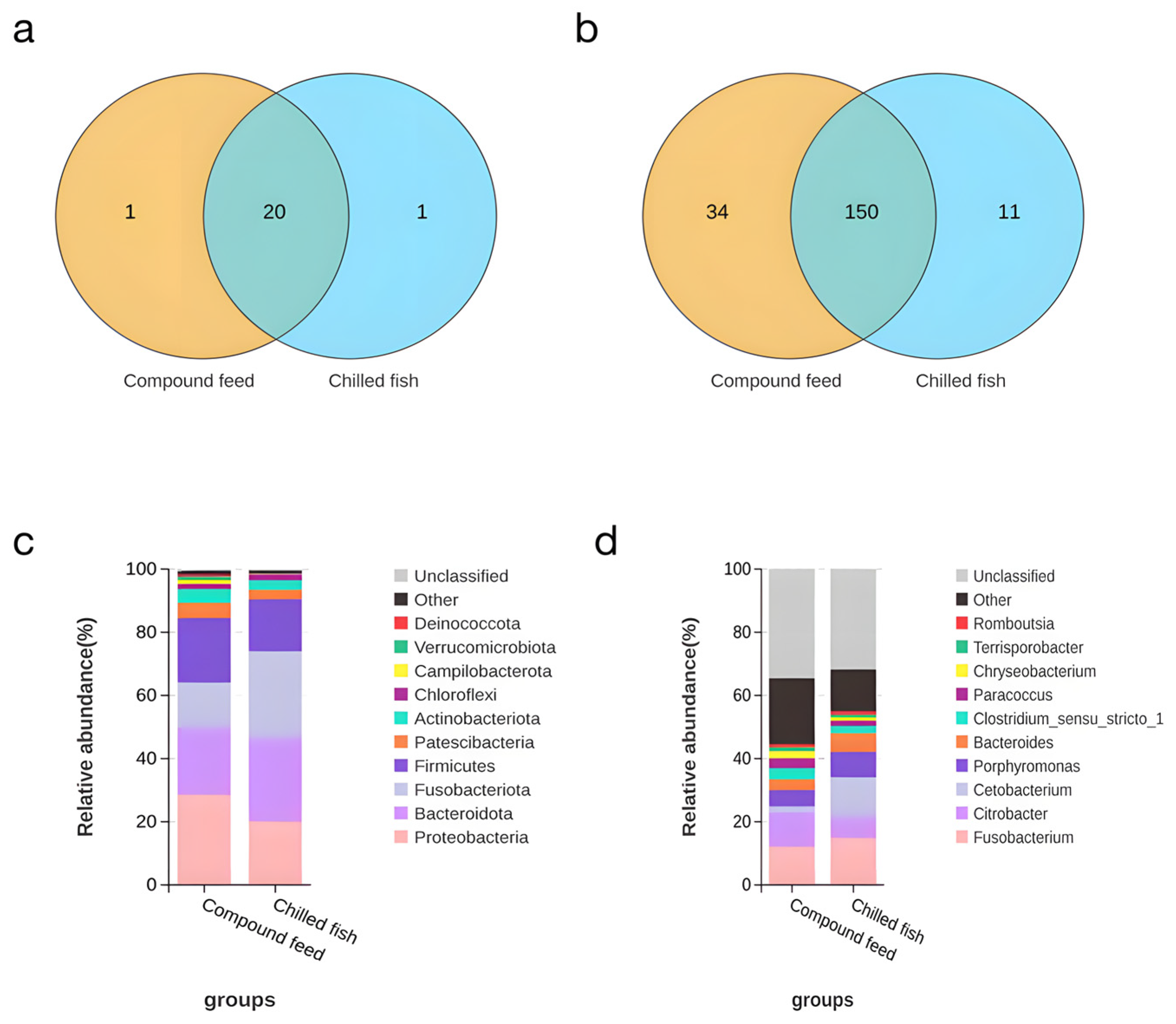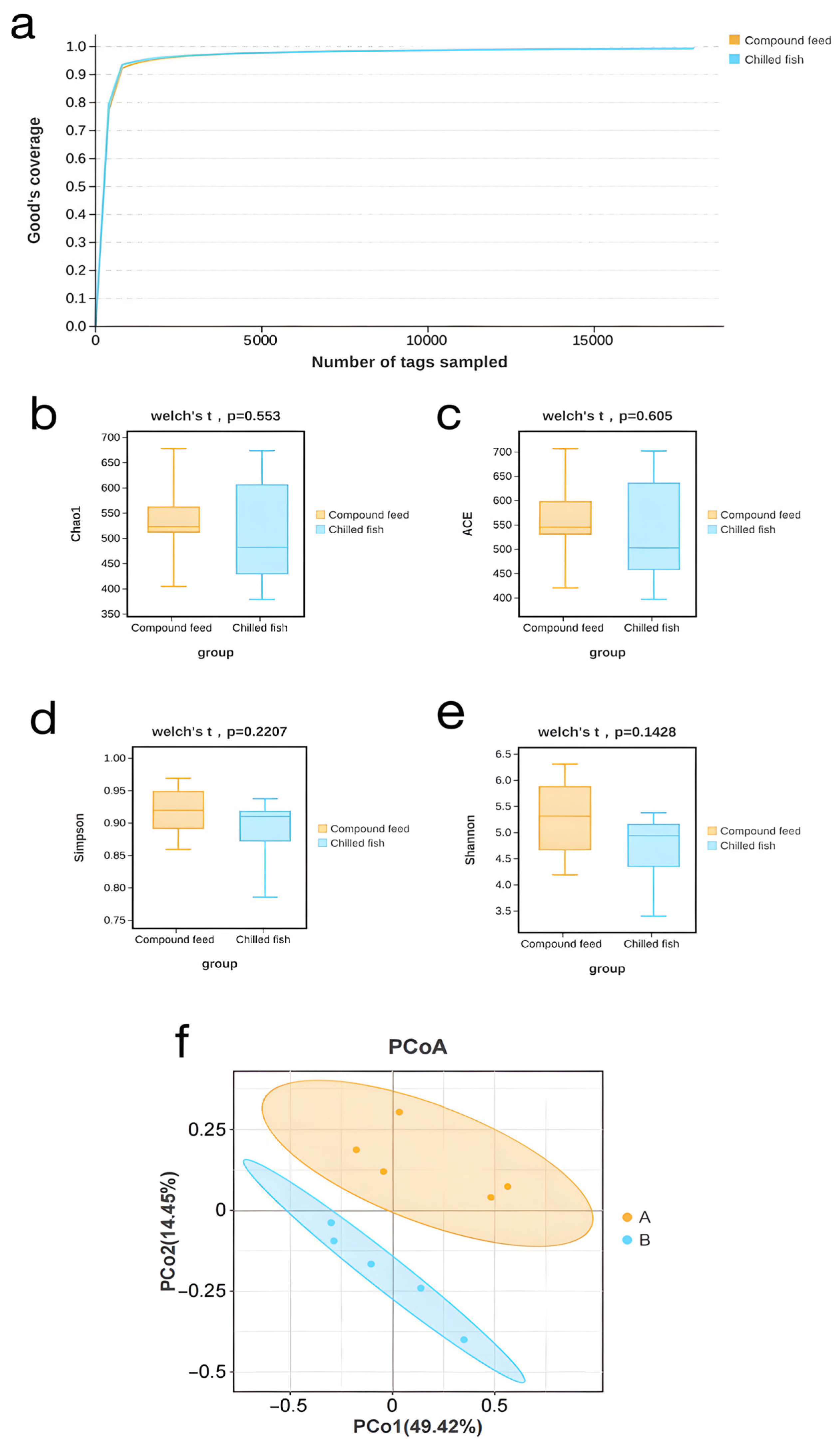 4.3. Effects of Different Types of Feeds on the Gut Microbial Composition of Siamese Crocodiles