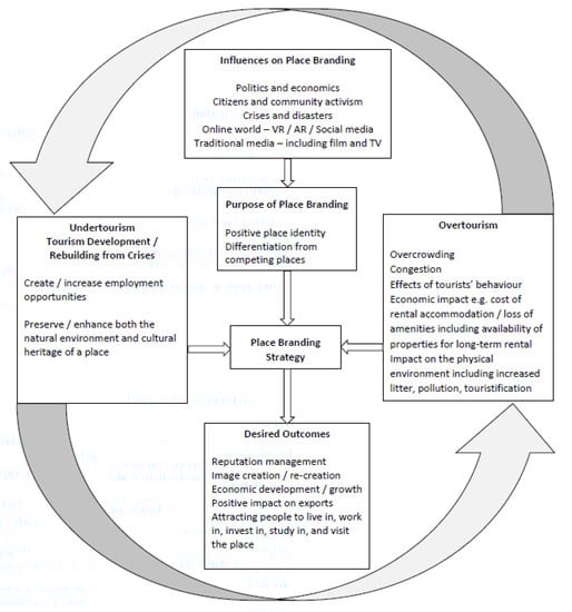 Following a presentation of the critical marketing approach that underpins this work, the article first attempts to appropriately locate place branding within the practice of place marketing, considering the various approaches to the relationship between place marketing and place branding evident in the extant literature. This results in an original contribution to the literature in the form of a graphical representation of the five varying perspectives found in the extant literature (Figure 1). This is important in order to understand the rationale behind the role and purpose of place branding, and its relationship to other place-marketing and place-management initiatives. The paper then goes on to critique the way place branding is often used to achieve economic growth, especially through tourism development. Due to the criticisms of the practice and outcomes of place branding, the article also considers how it could be enacted in a more sustainable way, and in particular focuses on the concept of participatory place branding and stakeholder engagement. The media reporting of the summer of overtourism evidenced how strongly particularly resident stakeholders reacted to overtourism []. The COVID-19 pandemic affected global tourism very badly during 2020, and various different types of tourism destinations around the world are turning to place branding to recover from the problem of undertourism. The paper therefore explores the notion that, in doing so, some places could end up in a cycle of overtourism, to undertourism, and then back again.