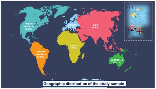 Geographical distribution of the study sample. Used and adapted with permission from www.depositphotos.com (accessed on 30 December 2020).
