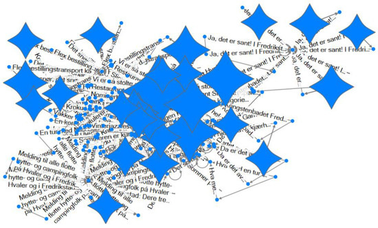 The social network analysis visualization in this research study consisted of data from a twelve-month period to emphasize the research method’s potential. The sample collected was sufficient to detect patterns and highlight recommendations. The data was gathered from the Fredrikstad/Hvaler tourist authority’s Facebook site, scraping month by month in a one-time setting, combining the data into a single spreadsheet for analysis using an access token. Descriptions are provided in the results section of this study. Data collection can involve various tools, although one tool does not necessarily work for all data posted online. Tools we recommend to gather data are Data Miner, Apify, Octoparse, and Scrapy Nodexl. The researchers recommend that future researchers test these tools on their dataset as access to APIs and tools often changes. For researchers particularly interested in text mining, Text Miner by IBM is a good choice to identify meanings from what people write, while addressing open ended questions; a good example of this is concerns the research paper on the data collected regarding the movie Frozen by Walt Disney [58]. There are many suitable tools out on the market to assist with gathering and analyzing data.