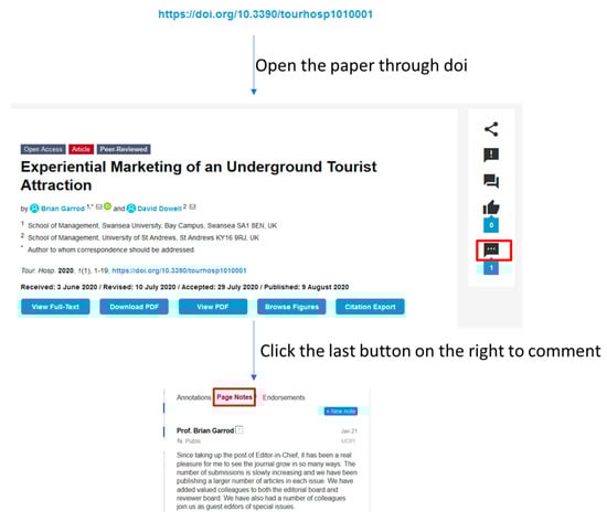 If readers believe that there is a fundamental flaw in an article, they are still, of course, welcome to contribute a traditional comment paper (https://www.mdpi.com/journal/tourismhosp/instructions (accessed on 29 January 2022)). These are short (2000–2500 word) articles that can be used to raise specific concerns about the scientific credibility of the content of an article. This is another way of ‘calling out’ the journal if a reader feels we are publishing poor-quality articles. The authors of an article that is the subject of a comment paper will have right to reply, in a ‘reply’ of similar length.