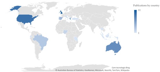 Europe contributes the most studies on this theme with 51 percent of the publications, the United Kingdom having the most published studies. Africa is least represented in these studies, accounting for only six percent of the sample. Figure 6 represents the geographical distribution of the 63 publications analyzed in this study.