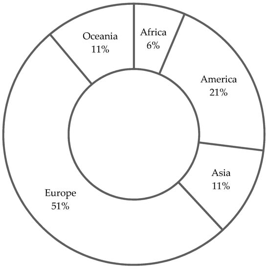 To observe the contribution of each continent, Figure 7 represents the percentage of analyzed articles according to the regions in which the studies were conducted.