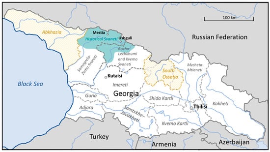 - Topchishvili, R. Svaneti and Its Inhabitants; National Parliamentary Library of Georgia: Tbilisi, Georgia, 2005; Available online: https://histinstitute.files.wordpress.com/2009/02/georgian_mountein_regions.pdf (accessed on 27 March 2022).