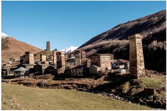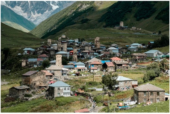 - Applis, S. Tourism Sustains, and Threatens, Georgia’s Highland Heritage. Tales of an Authentic Society Living at the Edge of Time Fail to Account for Higher Living Standards in the Soviet Heyday. Eurasianet. 2 November 2018. Available online: https://eurasianet.org/perspectives-tourism-sustains-and-threatens-georgias-highland-heritage (accessed on 27 March 2022).
