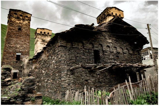- Pavan, V. Svaneti Towers, Fortified Stone Villages in the Caucasus. In Glocal Stone. Verona Fiere—46th Marmomacc Fair. 2011. Available online: https://ambtbilisi.esteri.it/Ambasciata_Tbilisi/it/ambasciata/news/dall_ambasciata/special-issue-svaneti-towers.html (accessed on 27 March 2022).