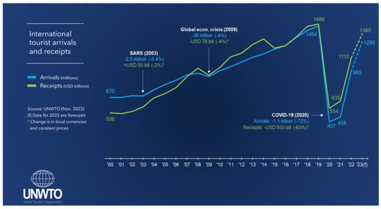 However, none of the crises described led to long-term negative effects on the tourism sector. Only SARS (2003) and the global financial crisis (2008–2009) had the effect of reducing international arrivals by 0.4% and 4%, respectively.